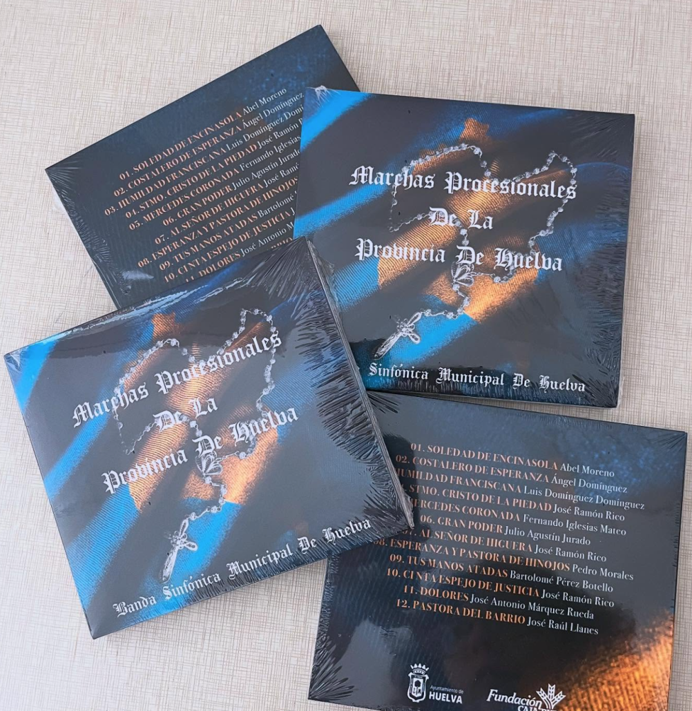 Proyecto: Diseño, maquetación y fabricación de digipack con libreto de 28 páras para el disco de «Marchas procesionales» de la Banda Sinfónica de Huelva.