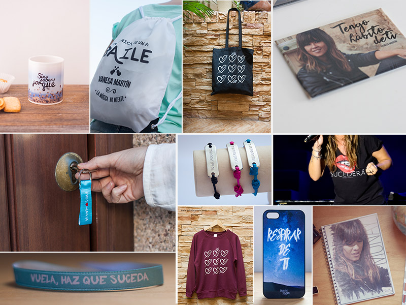 PROYECTO: Diseño y fabricación de merchandising para la artista Vanesa Martín que se distribuye a través de la tienda online oficial Artisteamdo. Fabricación para Juanito Makande, Triana, Pastora Soler, Rocio Ojuelos…